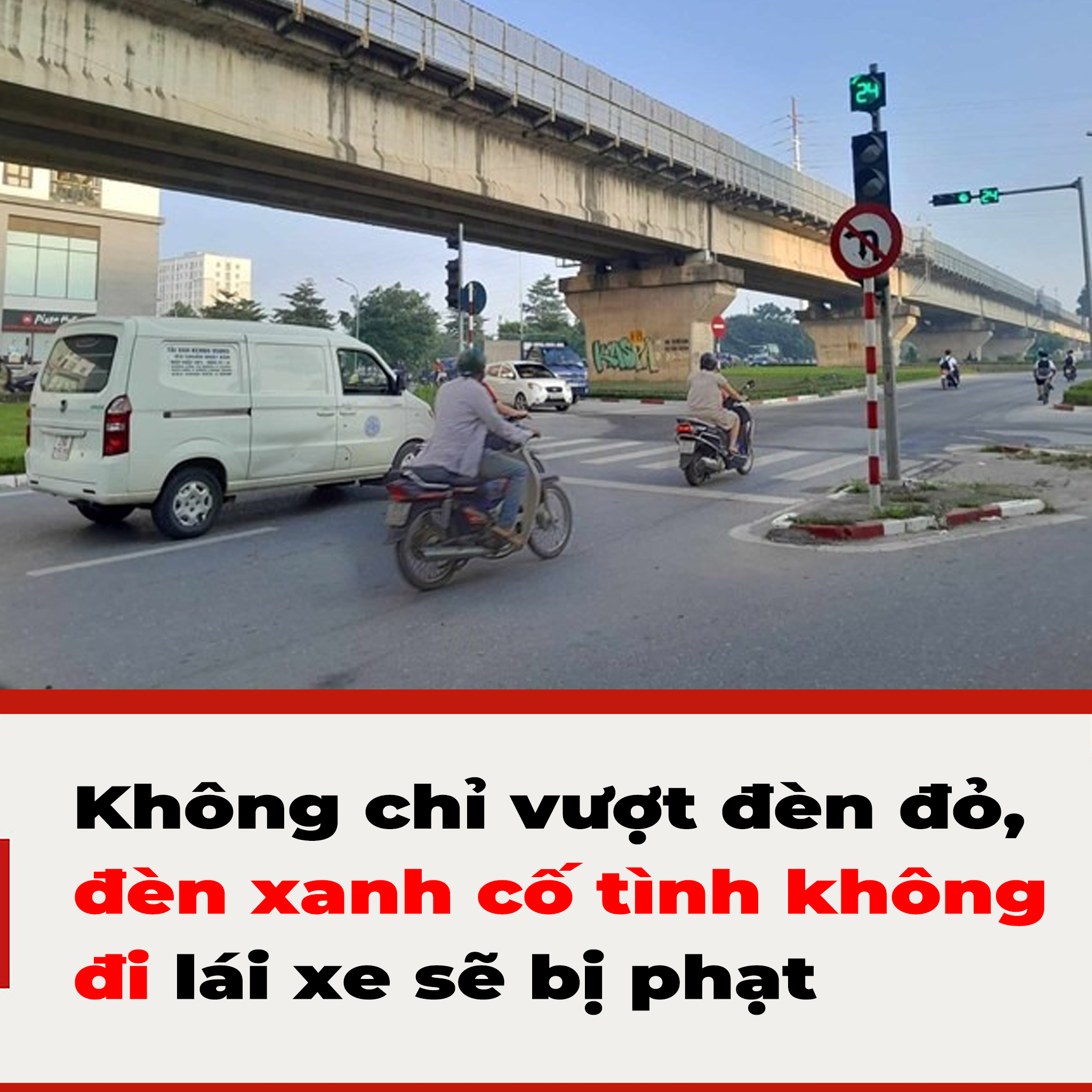 Không chỉ ôtô, xe máy, xe đạp, xe đạp máy (kể cả xe đạp điện), xe thô sơ cố tình không đi khi gặp đèn xanh sẽ bị phạt từ 100.000 đồng đến 200.000 đồng (Khoản 2 Điều 8 Nghị định 100/2019/NĐ-CP).