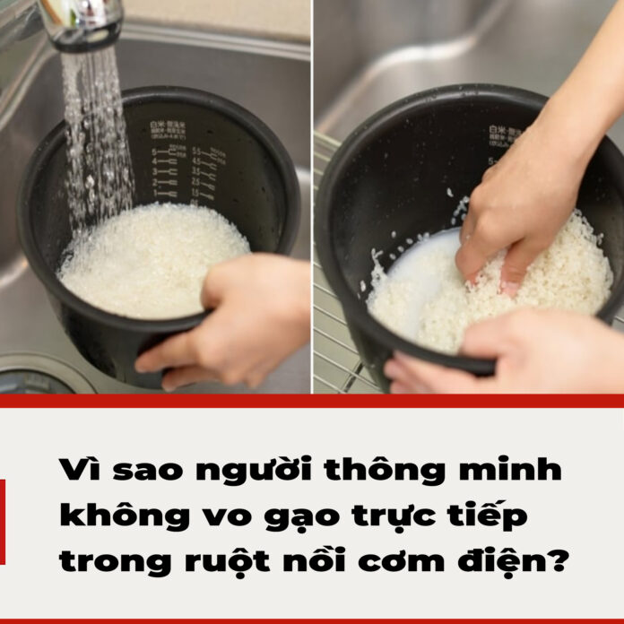 Vo gạo trực tiếp trong ruột nồi cơm điện là việc không được khuyến khích.