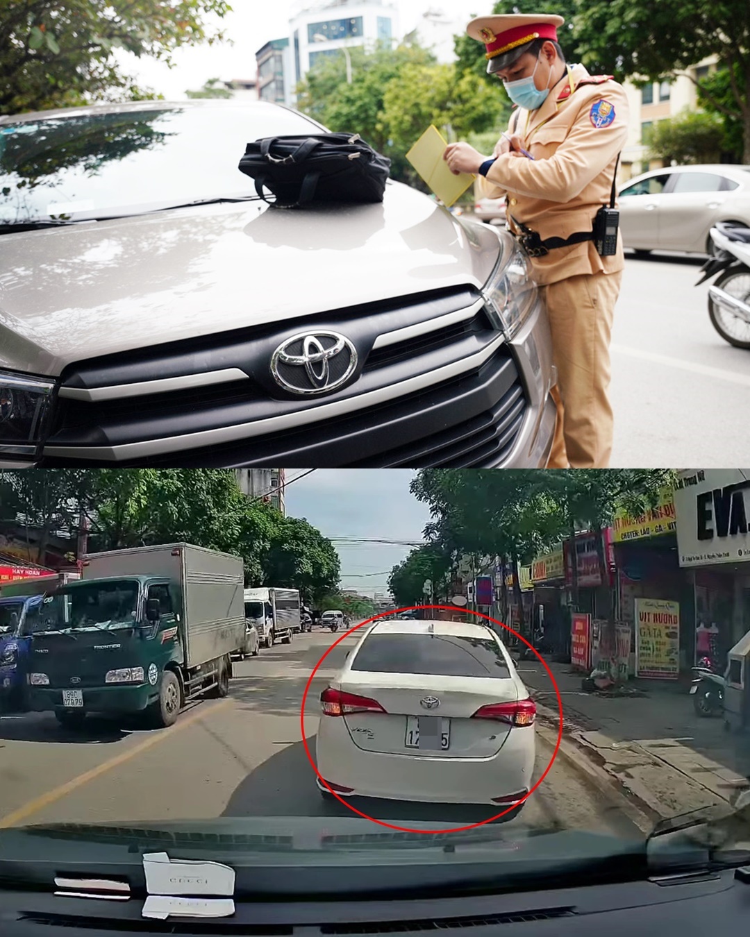 Trước đó, sáng 6-1, cảnh sát giao thông phát hiện ôtô đỗ dưới lề đường trước cửa số nhà 62 Nguyễn Xiển (phường Thanh Xuân Nam, quận Thanh Xuân), chủ xe bật đèn cảnh báo nguy hiểm rồi vào ăn phở. Cảnh sát giao thông đã lập biên bản xử phạt tài xế này.