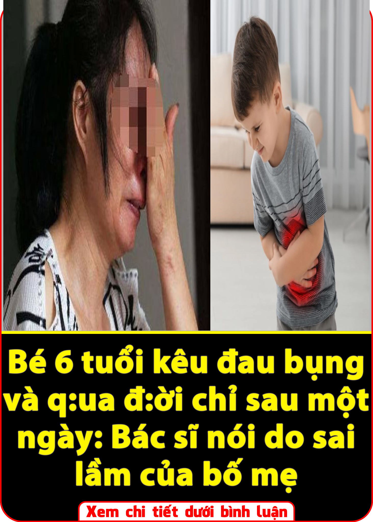 Hóa ra cô bé 6 tuổi bị viêm ruột thừa, nhưng do cả nhà đều chủ quan và không có kiến thức nên đã trì hoãn việc đưa bé đến bệnh viện. Hành động chậm trễ này của gia đình đã khiến bé gái m.ất m.ạng và đem đến sự hối hận cho cả cha lẫn mẹ cô bé.