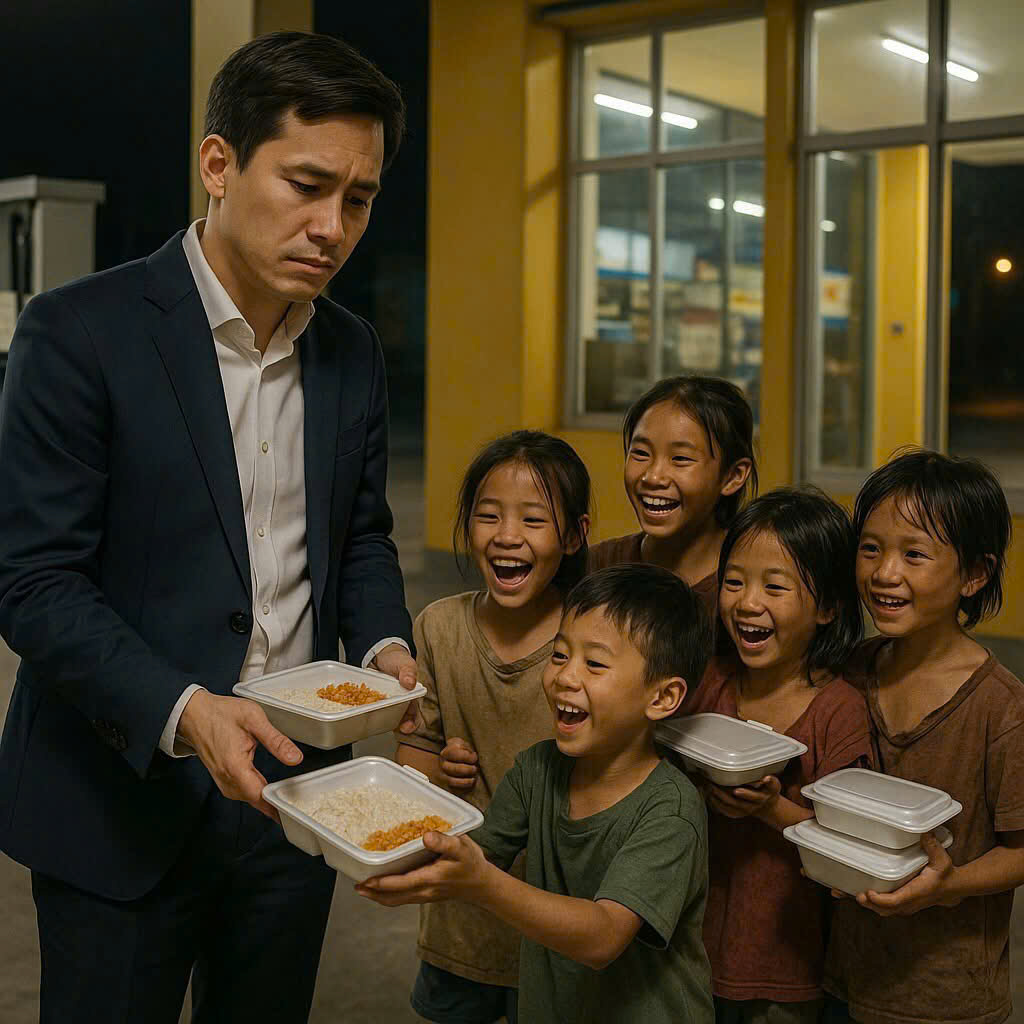 Anh bước tới hỏi. Chúng ngập ngừng, nhưng không xin tiền, chỉ xin anh… một hộp cơm.