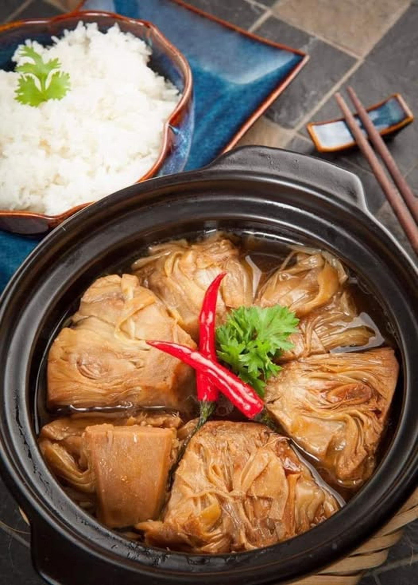 Họ đã tìm ra một nguyên liệu để thay thế cho thịt động vật nhưng vẫn giữ được hương vị thơm ngon đặc trưng của món ăn là sử dụng quả mít xanh thay thế hoàn toàn cho thịt.