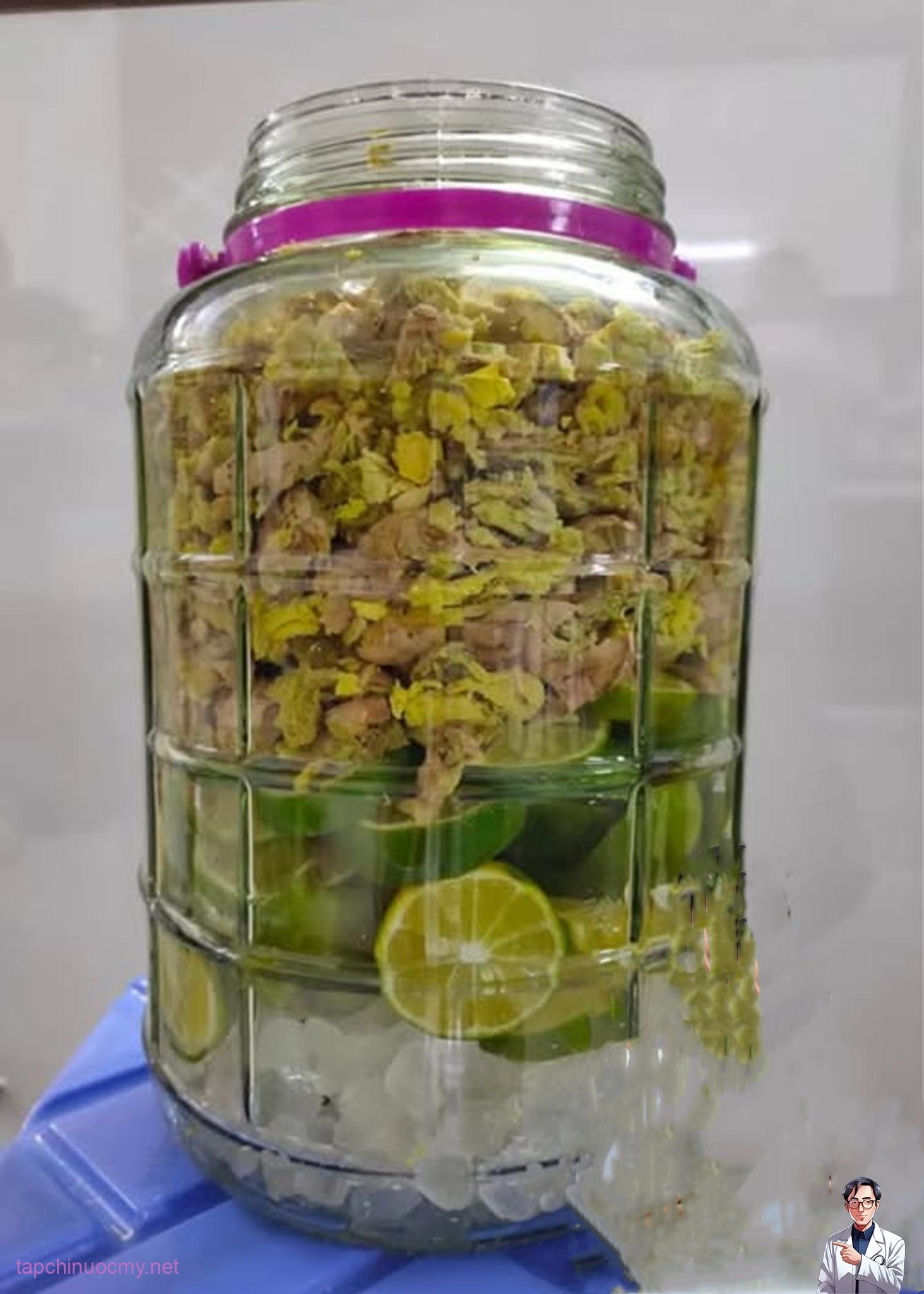 Chanh, sả, gừng, chum… tất cả đều rửa sạch và rửa qua rượu trước khi chế biến. (Này là khâu giúp ngâm các loại luôn ngon nha).