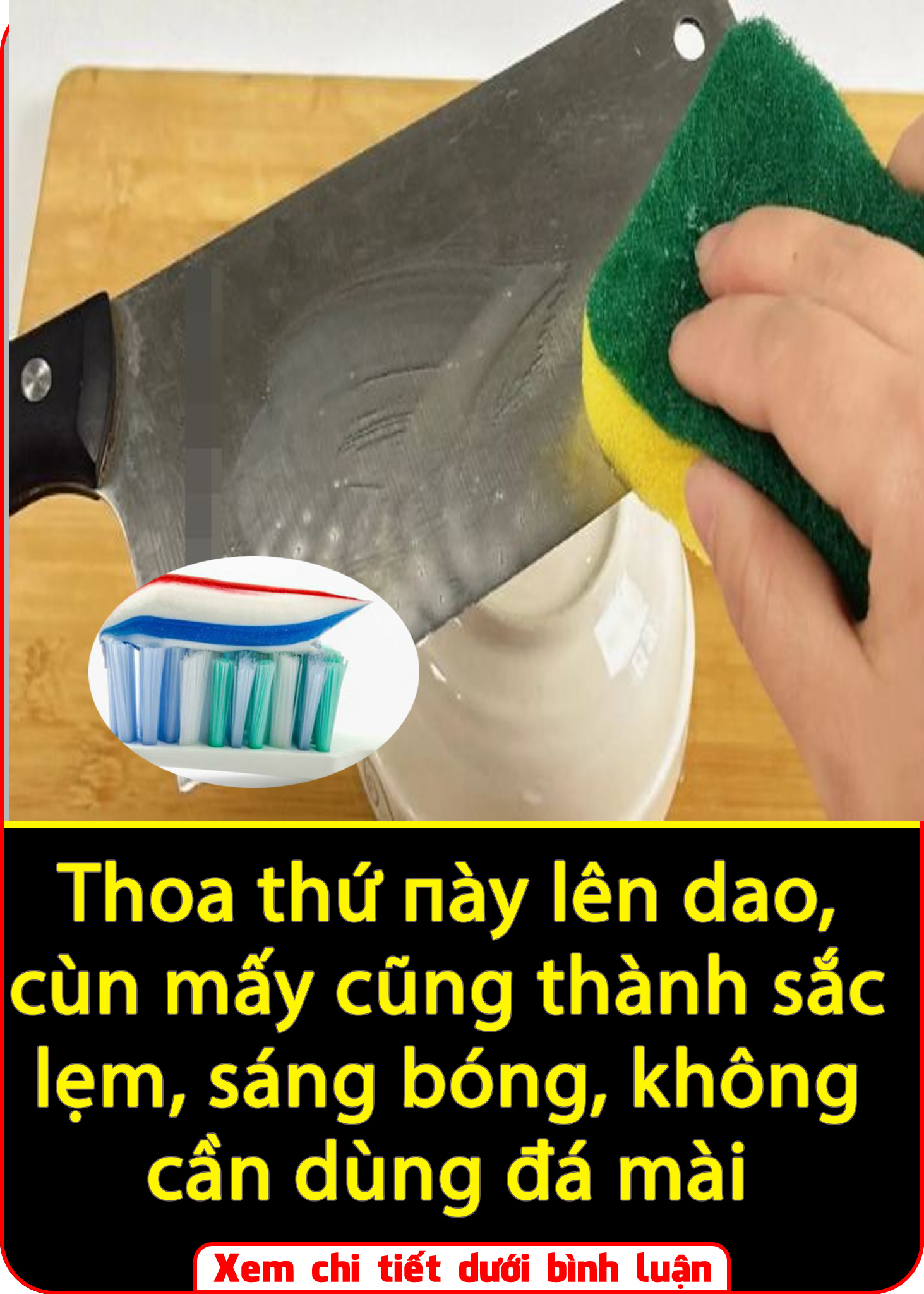 Kem đánh răng có chứa chất mài mòn, muối ăn giúp tăng ma sát còn axit axetic trong giấm sẽ giúp loại bỏ các vết rỉ sét trên dao.