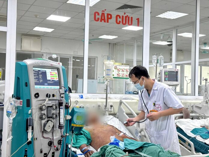 Bác sĩ thăm khám cho bệnh nhân nhiễm liên cầu lợn. (Ảnh: BVCC).