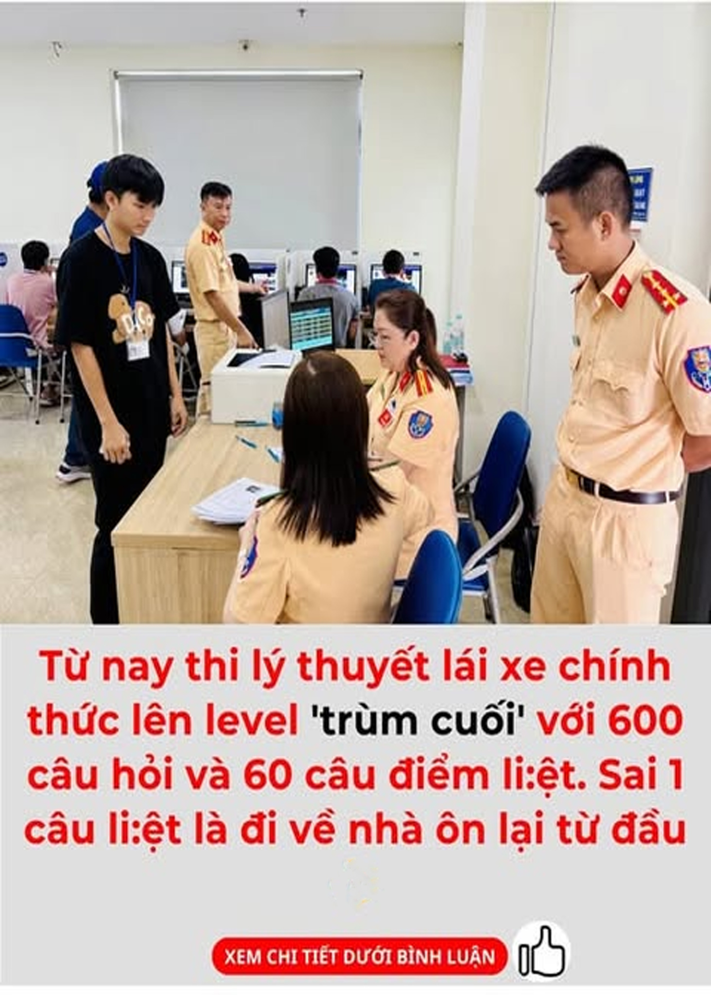 Cục CSGT lưu ý, trong bộ 600 câu hỏi có 60 câu hỏi về xử lý tình huống mất an toàn giao thông nghiêm trọng, mỗi đề sát hạch có một câu hỏi về xử lý tình huống mất an toàn giao thông nghiêm trọng, thí sinh lựa chọn đáp án sai tại câu này được tính là điểm liệt, bài thi lý thuyết sẽ không đạt yêu cầu.