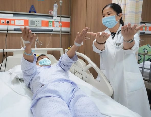 Tại trung tâm Phục Hồi chức năng, Bệnh viện Bạch Mai cũng tiếp nhận nhiều bệnh nhân bị đột quỵ sau khi cứu sống họ đều bị di chứng liệt không đi lại được, nói ngọng.